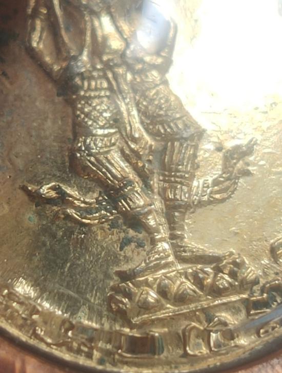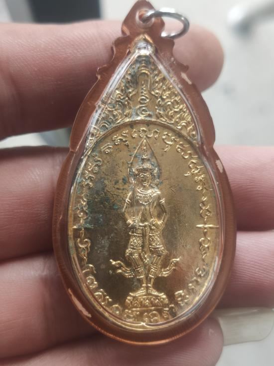 เหรียญพระสยามเทวาธิราช วัดป่ามะไฟ จ.ปราจีนบุรี ปี 2518 พิมพ์ใหญ่นิยม เนื้อกะไหล่ทอง พร้อมเหลี่ยมกันน้ำ |