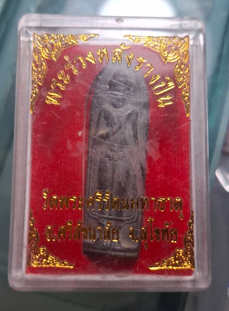 พระร่วงหลังรางปืน(ย้อนยุค) วัดพระศรีรัตนมหาธาตุฯ ตำบลศรีสัชนาลัย อำเภอศรีสัชนาลัย จังหวัดสุโขทัย เนื้อชิน |