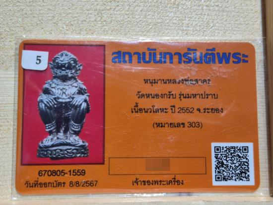 เคาะแรก!!! หนุมานรุ่นแรก หลวงพ่อสาคร วัดหนองกรับ รุ่นมหาปราบ **เนื้อนวโลหะ** อุดผงพรายกุมาร 2552 จ.ระยอง (หมายเลขสวย 303)