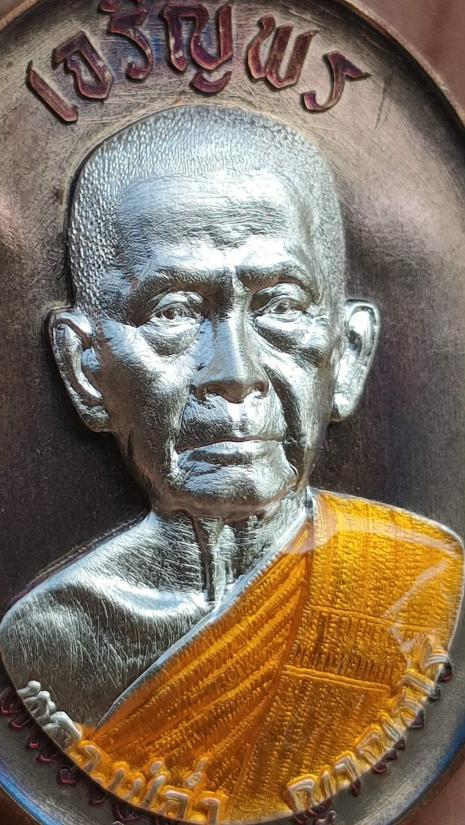 เหรียญ"เจริญพร"เลื่อนสมณศักดิ์ สร้างมณฑป พระมงคลวชิรญาณ(พ่อท่านอ่ำ ญาณธโร)อายุุ102ปี วัดโคกโพธิ์สถิตย์ นครศรีฯ เนื้อมหาชนวน หน้ากากเงิน ลงยาจีวร หลังพัดยศ หมายเลข ๔๑ พร้อมกล่อง พระสวยมากๆคับ |