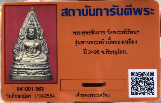 พระพุทธชินราช วัดพระศรีรัตนมหาธาตุวรมหาวิหาร จ.พิษณุโลก รุ่นพานพระศรี เนื้อทองเหลือง ปี 2496 สวยมาก พร้อมบัตรรับรองครับ เลี่ยมเลเซอร์กันน้ำอย่างดีครับ |
