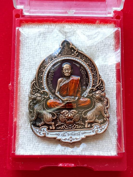 เหรียญ ๕ พยัคฆ์ หลวงปู่บุญมา โชติธัมโม สำนักสงฆ์เขาแก้วทอง จ.ปราจีนบุรี ปี ๒๕๖๔ เนื้อทองแดงซาติน ลงยาสีม่วงขอบขาว ลงยาจีวร ตอกโค๊ต ๑๒๔ ผิวสวยเดิม