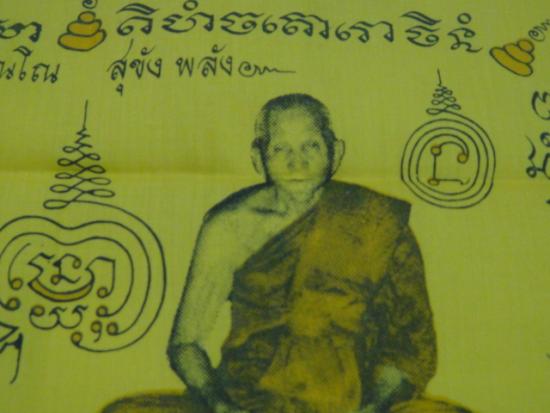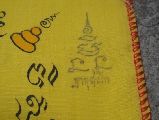 ผ้ายันต์รุ่นนี้หลวงพ่อแช่มท่านเมตตาอธิฐานจิตปลุกเสกให้ในกุฏิของท่าน มีปั้มโค๊ตตรายางข้างองค์หลวงพ่อแช่มด้วย |