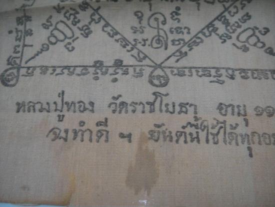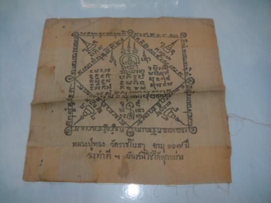 วัดใจเคาะเดียว........100......ผ้ายันต์หลวงปู่ทอง วัดราชโยธา อายุ 117ปี หลังนางกวัก ขนาด 8 X 8 นิ้ว |