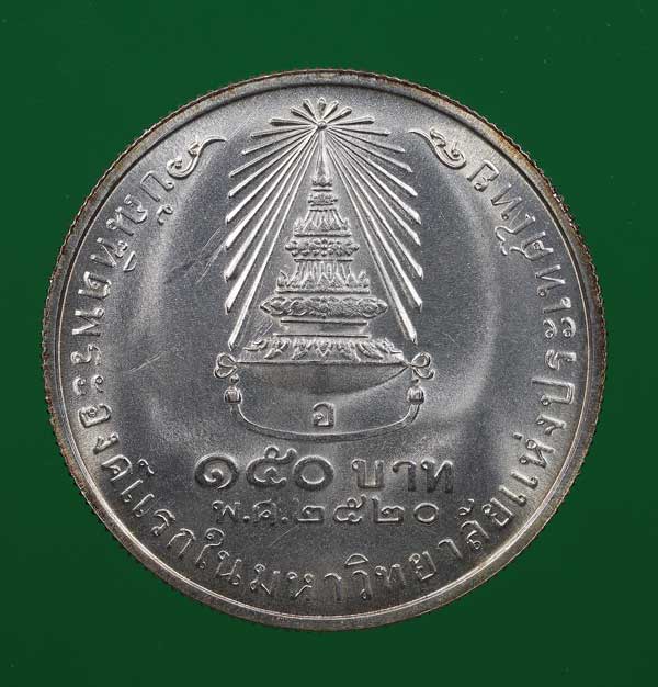 รายละเอียด เหรียญเงิน 150 บาท ที่ระลึก สมเด็จพระเจ้าลูกเธอ เจ้าฟ้าสิรินธรฯ บัณฑิตพระองค์แรกในมหาวิทยาลัย พ.ศ.2520 สภาพไม่ผ่านการใช้งาน สวย น่าสะสม