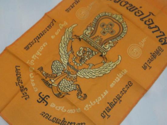 วัดใจเคาะเดียว........100.......ผ้ายันต์ครุฑแบกเสมา วัดหลวงพ่อโอภาสี อาศรมบางมด ขนาดประมาณ 11 x 18 นิ้ว สวย |