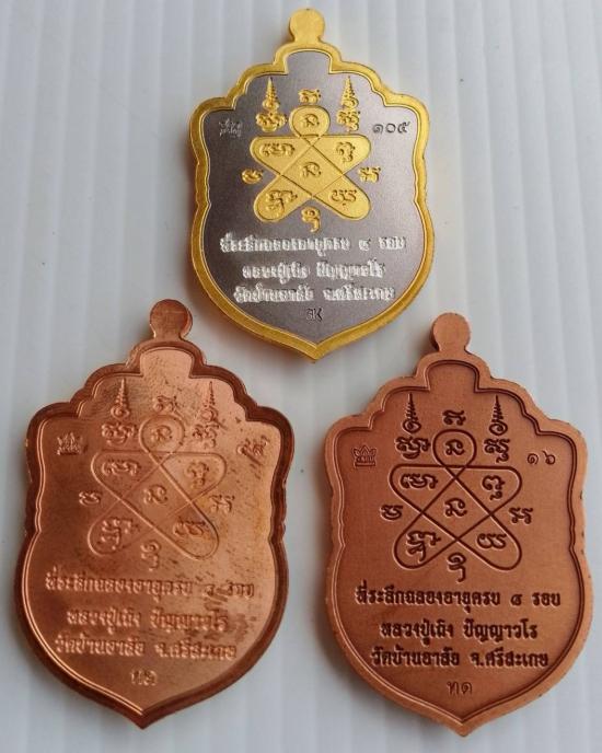 3. เนื้อทองแดงซาติน ลงยาแดง ซุ้มเขียว ขอบน้ำเงิน ลงยาจีวร ตอกนัมเบอร์ 16 |