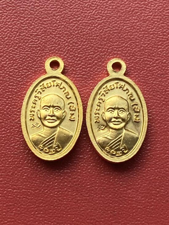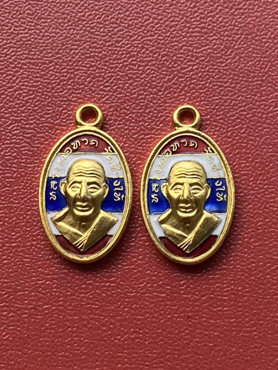 เคาะเดียวแดง เม็ดแตง 2องค์หลวงปู่ทวด รุ่น102ปี เนื้อ ชุบทองลงยาธงชาติ