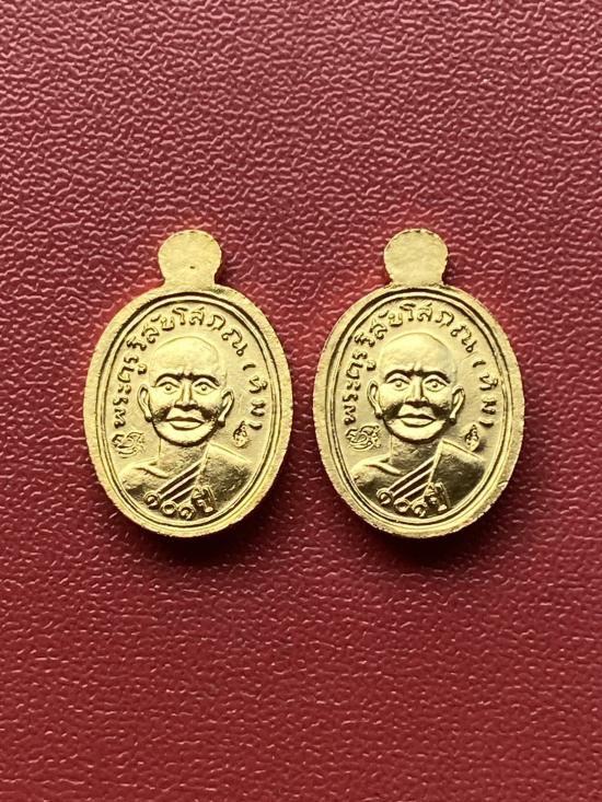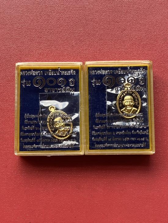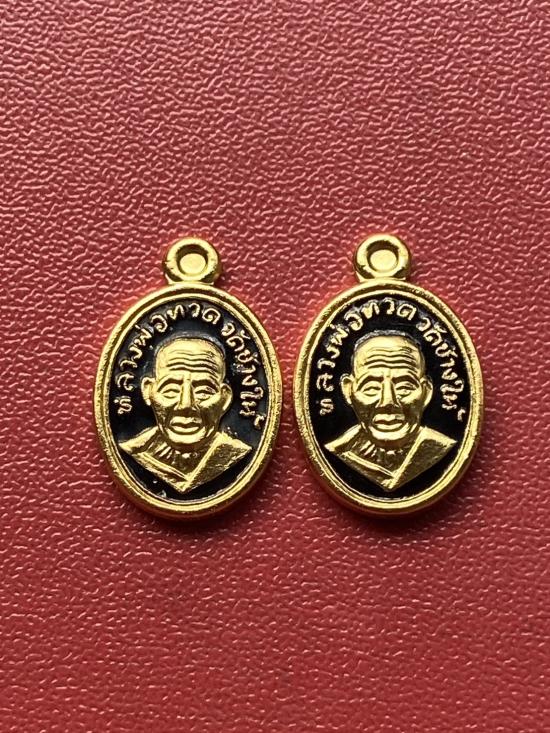 เคาะเดียวแดง เม็ดแตง 2องค์หลวงปู่ทวด รุ่น101ปี เนื้อ ชุบทองลงยาดำ