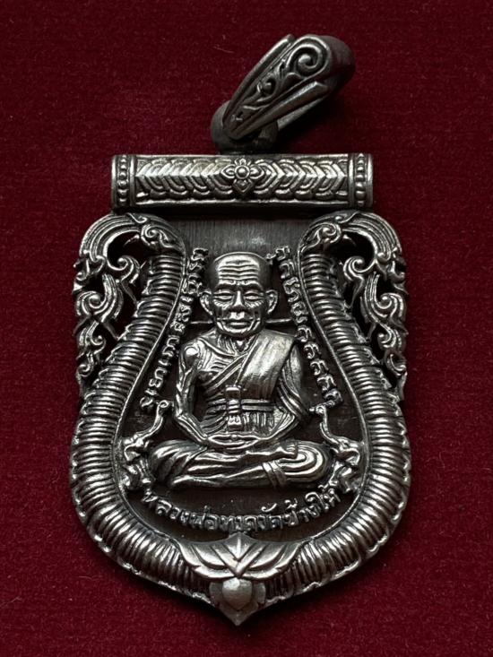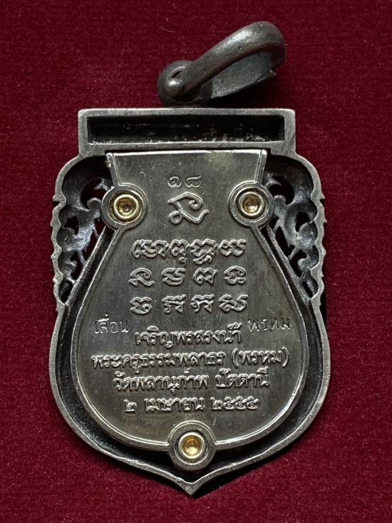 เคาะเดียวแดง หลวงปู่ทวด พิมพ์หน้าเลื่อน รุ่น เจริญพรสรงน้ำ เลข18 เนื้อ บรอนชุบเงินโบราณ