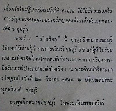 พระร่วงช้างเผือก ยุวพุทธิกสมาคมชลบุรี ปี ๒๕๑๒ เจ้าคุณนรฯ วัดเทพศิรินทร์ อธิษฐานจิตปลุกเสก
