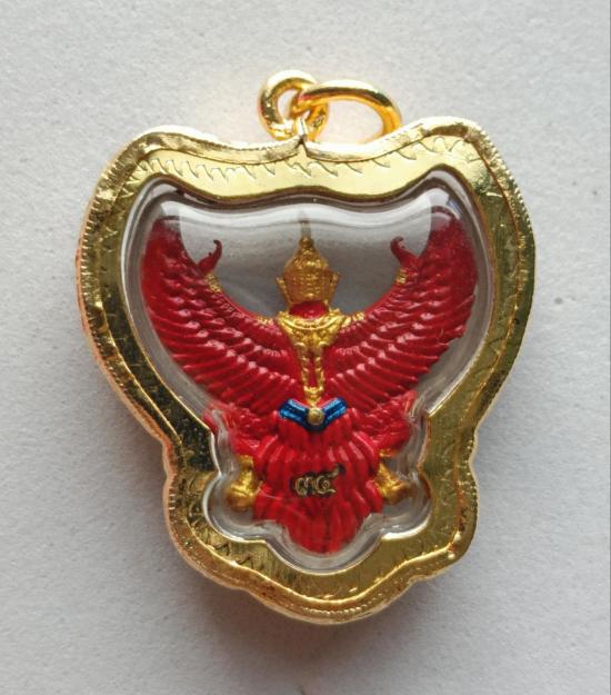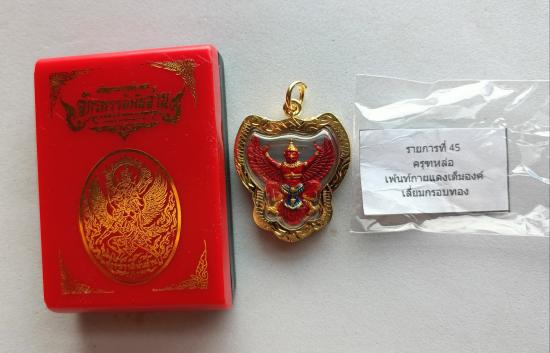 วัดใจเคาะเดียวแดงจ้า พญาครุฑเพ้นท์กายแดงเต็มองค์ หมายเลข34 เลี่ยมกรอบชุบทอง พระอาจารย์เลี้ยง วัดจอมเกษ เคาะเดียวแดงจ้า