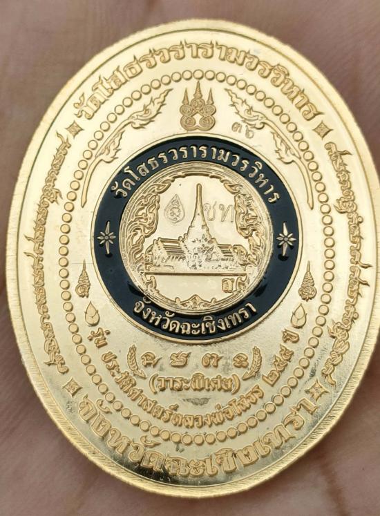 เหรียญหลวงพ่อโสธร รุ่น"ประวัติศาสตร์ครบรอบ 255 ปี"วาระพิเศษ(วัดสร้าง) วัดโสธรฯ ฉะเชิงเทรา เนื้อชุบทอง ลงยาดำ หลังตราวัดลงยาดำ หมายเลข ๓๖ พร้อมกล่อง ปลุกเสกวันเพ็ญ15ค่ำเดือน12 (ซีรี่5รุ่นประวัติศาสตร์255ปีวัดโสธร)