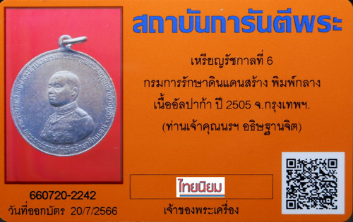 เหรียญรัชกาลที่ 6 ของกรมการรักษาดินแดน พ.ศ. 2505 นี้ ได้ถูกจัดเข้าอยู่ในทำเนียบวัตถุมงคลของเจ้าคุณนรฯ อีกรุ่นค่ะ