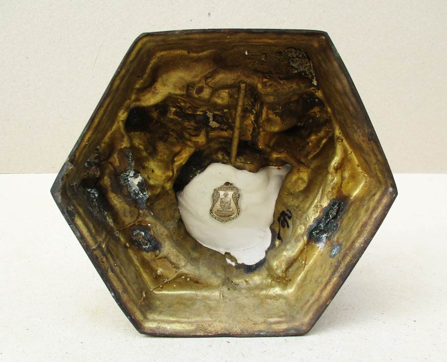 ฐานแแบบหกเหลี่ยม กว้าง 8 นิ้ว ใต้ฐานอุดปูน ฝังเหรียญรูปใบเสมา !!
