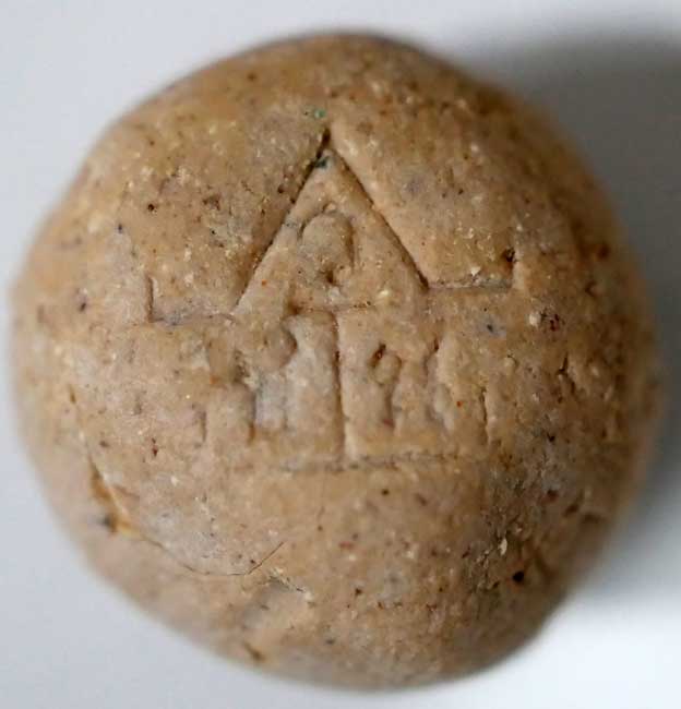 **ลูกอมเยี่ยวชะนีนะจินดามณีรุ่นแรกพระอาจารย์ทิน วัดชายนา ตอกโค๊ดศาลาใหญ่ (ฝังตะกรุด สาริกา 1 ดอก) ปี 2556 |
