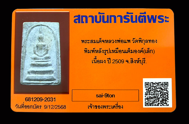 สมเด็จหลังรูปเหมือน ปี.09 หลวงพ่อแพ พิมพ์เล็ก .................600