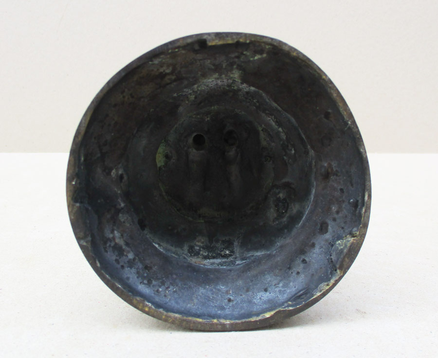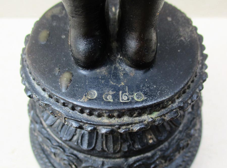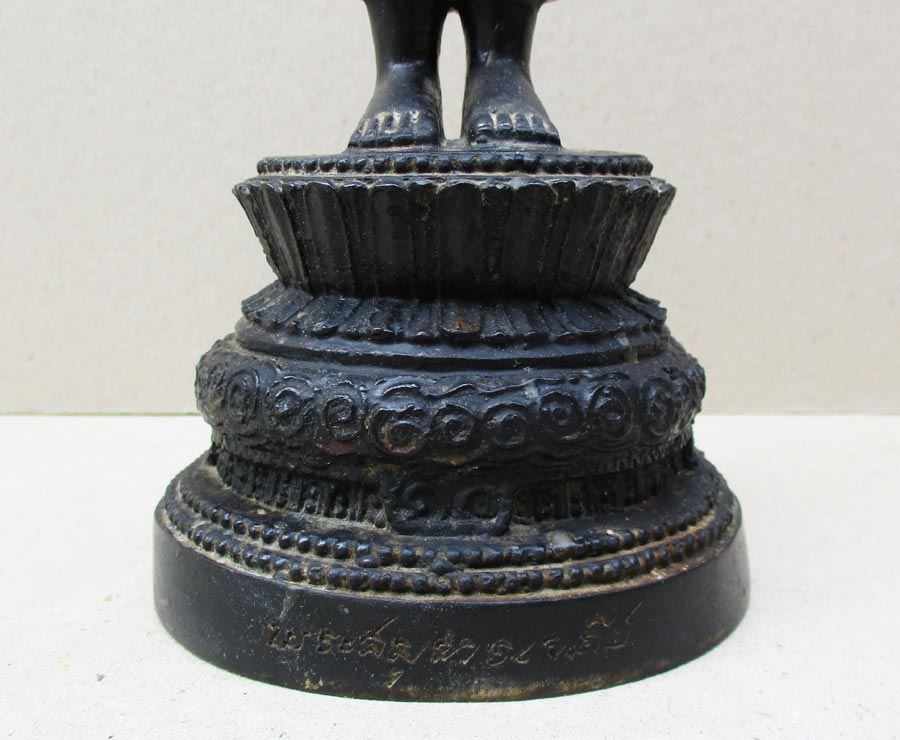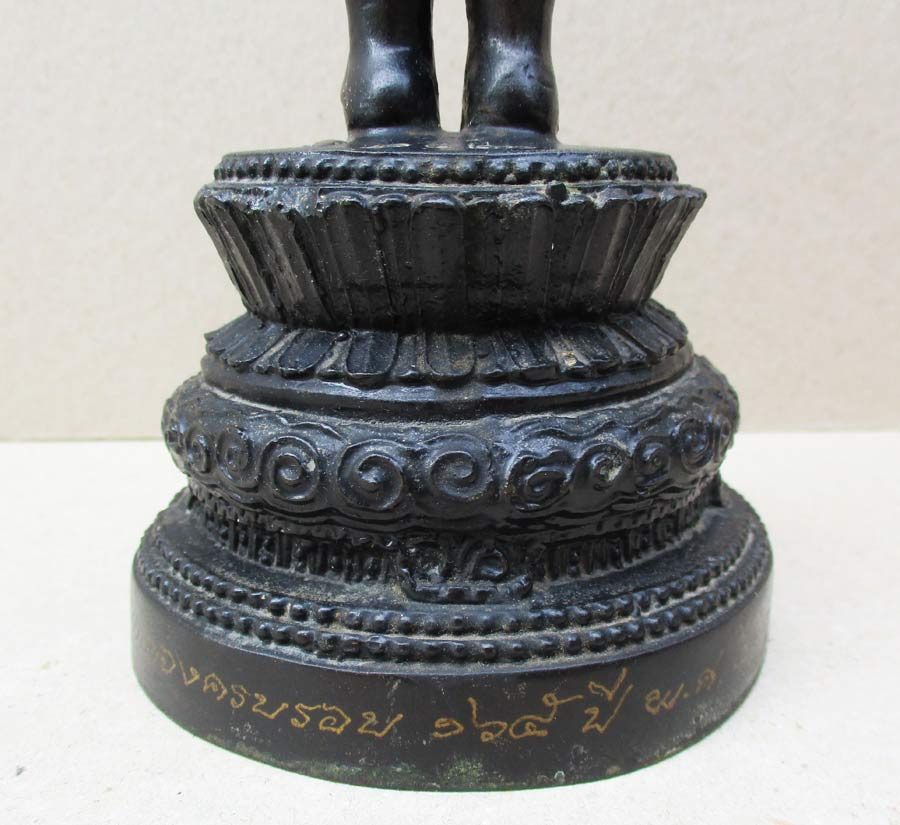 พระบูชาปางยืนห้ามสมุทร ฉลองครบรอบ 164 ปี พระสมุทรเจดีย์ จ.สม ุทรปราการ พ.ศ.2535 สูงรวมฐาน 14.5 นิ้ว เนื้อโลหะรมดำมันปู ผิ วแห้งหิ้ง !!