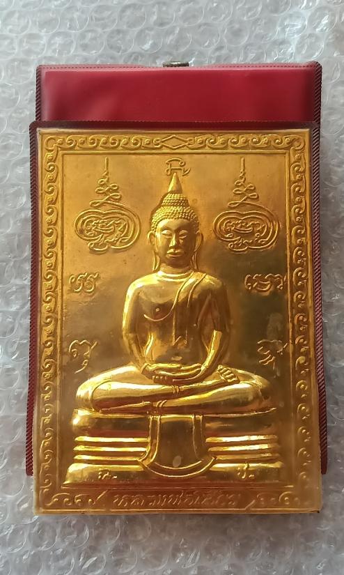 แผ่นปั๊มหลวงพ่อโสธร ปี 2525 ขนาดสูง 15ซ.ม. กว้าง 10 ซ.ม. อยู่ในซองพลาสติกสำหรับตั้งบูชาเดิมจากวัด