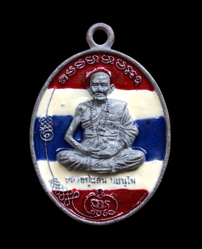 +!!เคาะเดียวllดง ตลอดสาย!!+ เหรียญหล่อ เมตตามนต์พระกาฬ หลวงปู่แสน วัดบ้านหนองจิก ปี62 เนื้อแร่ลงยาลายธงชาติ เลขสวย 19 พร้อมกล่องเดิมครับ