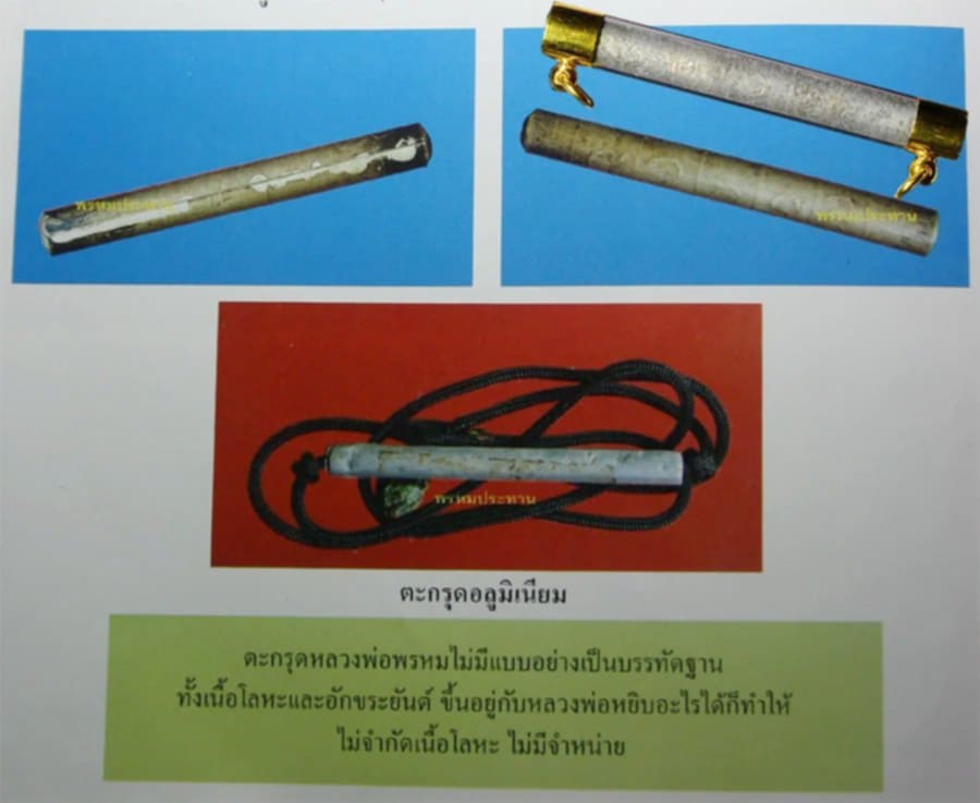 >> บรรดาลูกศิษย์ลูกหา และผู้ที่ศรัทธาต่างก็ได้ประจักษ์ ในพุทธคุณอันศักดิ์สิทธิ์ของตะกรุดอะลูมิเนียมจารมือ(ม้วนใต้น้ำ) ยุคต้น ของ"หลวงพ่อพรหม"กันถ้วนหน้าครับ เป็นตะกรุดที่น่าใช้ติดตัวคุ้มครองกายมากๆครับ