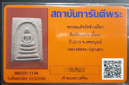 สมเด็จคะแนน หลวงพ่อทบ เนื้อผง ปี2519 วัดช้างเผือก จ.เพชรบูรณ์ พร้อมบัตรรับรองครับ |