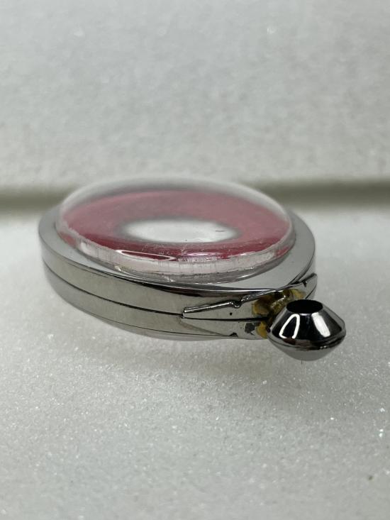 ชื่อพระเครื่อง วัดใจเคาะเดียว_ตลับสแตนเลสเปิดหลังสั่งตัด_ใส่เหรียญทรงไข่ขนาดตามภาพ