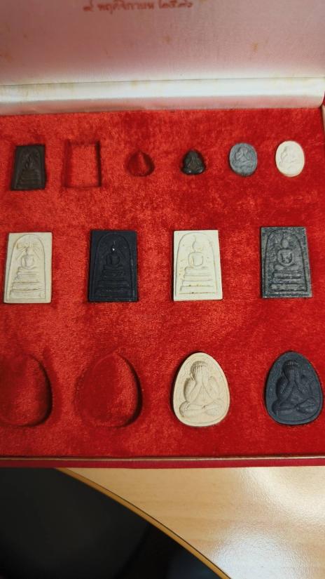 รายละเอียด พระชุดฉลองอายุ ๗๒ ปี พระวิมลธรรมญาณ(ปู่วิเวียร ฐิตปุญฺญเถร) วัดดวงแข กทม.ปี ๒๕๓๖ 10 องค์ พร้อมกล่อง(ชุดกรรมการ พระตามภาพ) เคาะแรกถึงขั้นต่ำครับ LINE ID : sumsawang 1,เหรียญหล่อสมเด็จรัศมี เนื้อนวโลหะ 2,พระปิดตาปุ้มปุ้ย หล่อโบราณ เนื้อนวโลหะ 3,พระปิดตาทรงไก่ เนื้อใบลาน 4,พระปิดตาทรงไก่ เนื้อเกษร 5,พระสมเด็จพุทธเมตตา เนื้อเกษร 6,พระสมเด็จพุทธเมตตา เนื้อใบลาน 7,พระสมเด็จพุทธเมตตา 2 นะ เนื้อเกษร 8,พระสมเด็จพุทธเมตตา 2 นะ เนื้อใบลาน 9,พระปิดตาพุทธเมตตาพิเศษ ๗๒ หลังยันต์ไก่เถื่อน เนื้อเกษร 10,พระปิดตาพุทธเมตตาพิเศษ ๗๒ หลังยันต์ไก่เถื่อน เนื้อใบลาน (รับพระ 10 องค์ พร้อมกล่องกรรมการ)