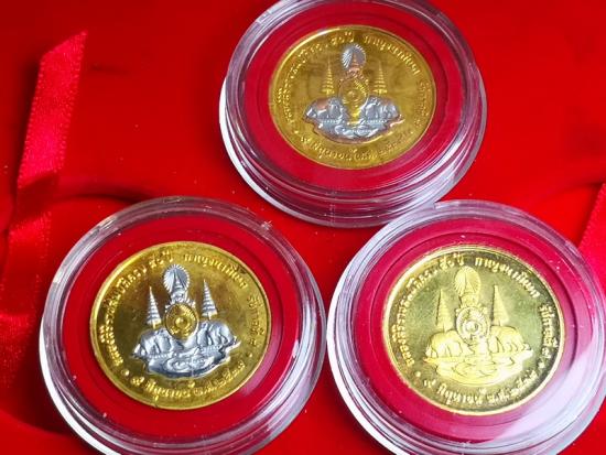 เหรียญฉลองศิริราชสมบัติ ครบ 50 ปี รัชกาลที่ 9 ชุบสามกษัตริย์ ปี2539 รับพระ3เหรียญ ตามรูป ราคาเบาๆ