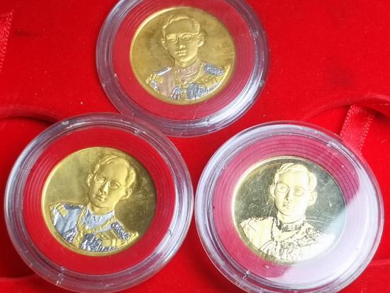 ชื่อพระเครื่อง เหรียญฉลองศิริราชสมบัติ ครบ 50 ปี รัชกาลที่ 9 ชุบสามกษัตริย์ ปี2539 รับพระ3เหรียญ ตามรูป ราคาเบาๆ