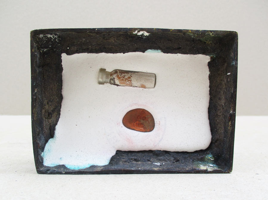 ใต้ฐานอุดปูนปั๊มตราวัด ฝังขวดใสบรรจุผงมวลสาร ฝังเหรียญ ตอกโค๊ต ศาลา , ตอกโค๊ต ยันต์นะ ตอกหมายเลข 31