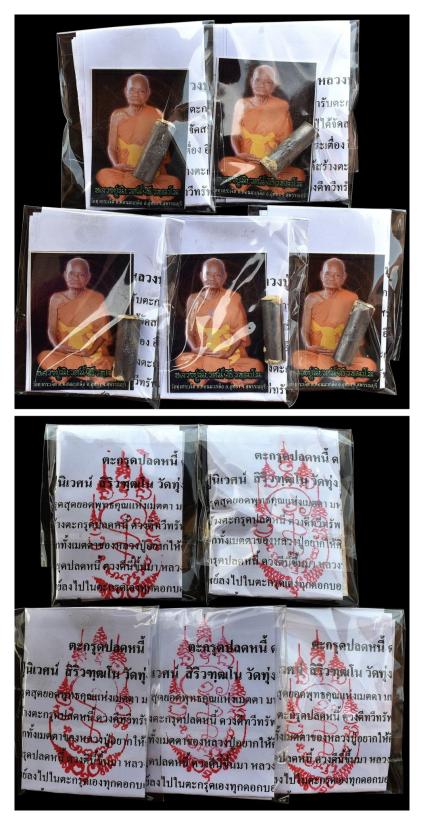 ชุด 5 ดอก...ตะกรุดปลดหนี้ ดวงดีทวีทรัพย์ อุดผงมวลสาร ปี 2552 หลวงปู่นิเวศน์ วั ดทุ่งกระเจ็ด จ.สุพรรณบุรี พร้อมซองรูปใบฝอยจากวัด