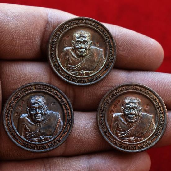 ชุด 3 องค์...เหรียญหลวงปู่ทวด รุ่นทักษิณาจารย์ 53 เนื้อนวะ เบอร์ ๑๒๑ + ๑๒๐ + ๗๖ หลวงปู่เฉลิม วัดบุญนาคประชาสรรค์ จ.สมุทรสงคราม พร้อมซองใบฝอยเดิมจากวัด สภาพพระตามรูปทุกประการ (ขนาดประมาณ 2.7 ซม.)