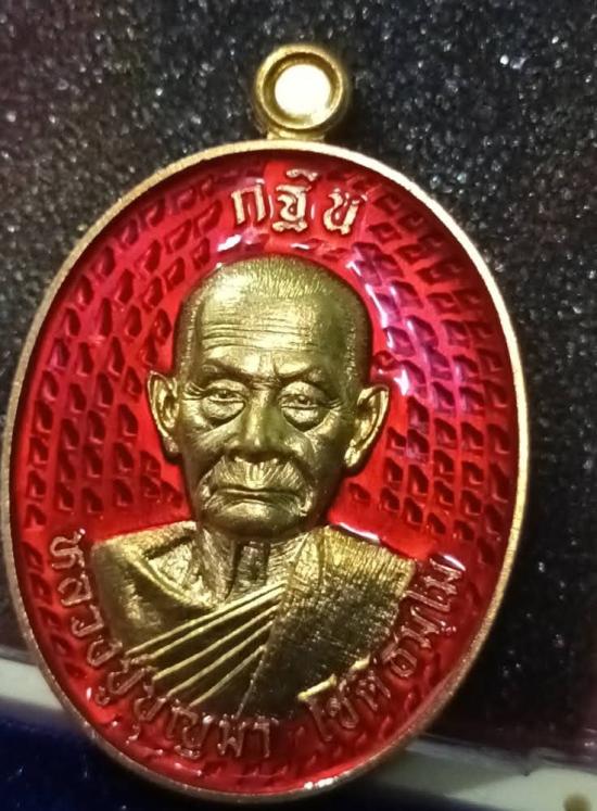 เนื้อชุบทอง ลงยาแดง พร้อมกล่องเดิม No.34 เหรียญกฐินรุ่นสุดท้ายหลวงปู่ |