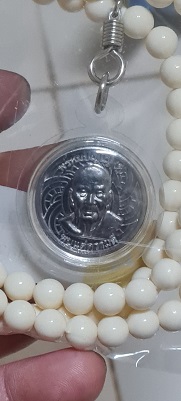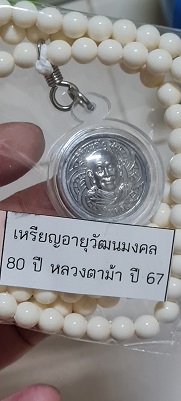 เหรียญอายุวัฒนมงคล 80 ปี เนื้อตะกั่ว(มีค่าดั่งทองคำ)หลวงตาม้า วัดถ้ำเมืองนะ พร้อมรอยจารหลวงตาม้า เลี่ยมจากวัดพร้อมประคำ