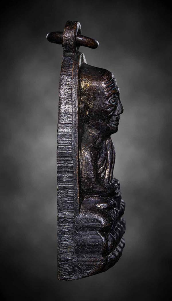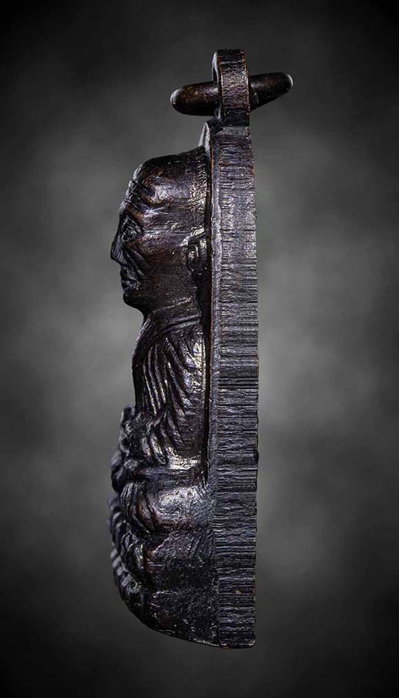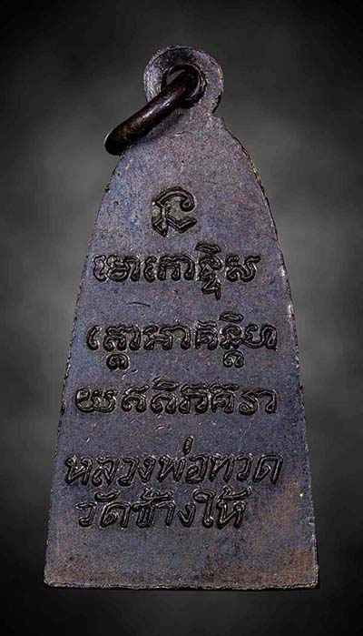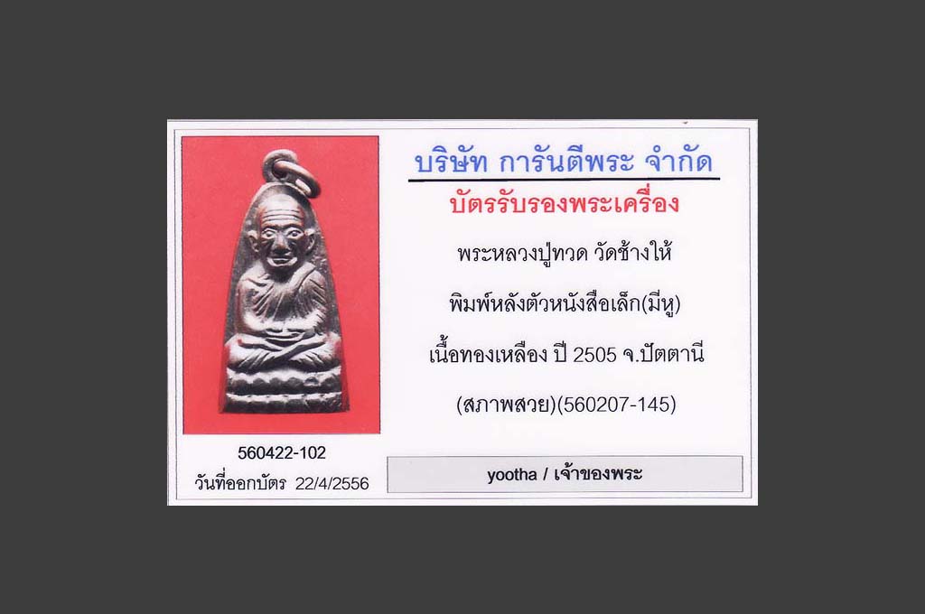 พระหลวงปู่ทวด วัดช้างให้ พิมพ์หลังหนังสือเล็ก (มีหู) เนื้อทองเหลือง ปี 2505 จ.ปัตตานี (บัตรสถาพสวย)