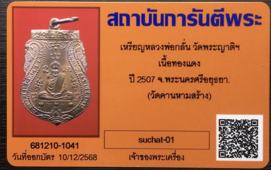 เหรียญหลวงพ่อกลั่น วัดพระญาติฯ เนื้อทองแดง ปี 2507 จ.พระนครศีอยุธยา วัดคานหามสร้าง