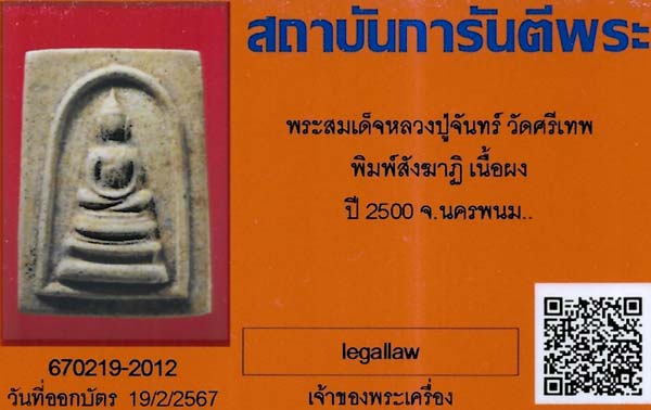 มาพร้อมบัตรรับรองพระแท้ให้ท่านสะสมได้สบายใจว่าได้พระดี พระแท้ แน่นอน ล้าน % ครับผม