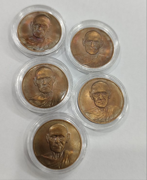เคาะเดียว++ทีเดียว 5 เหรียญ++ เหรียญสมเด็จโต 122 ปี 2537 ขนาด 2.1 ซมใส่ตลับเหรียญ 7 อย่างดี