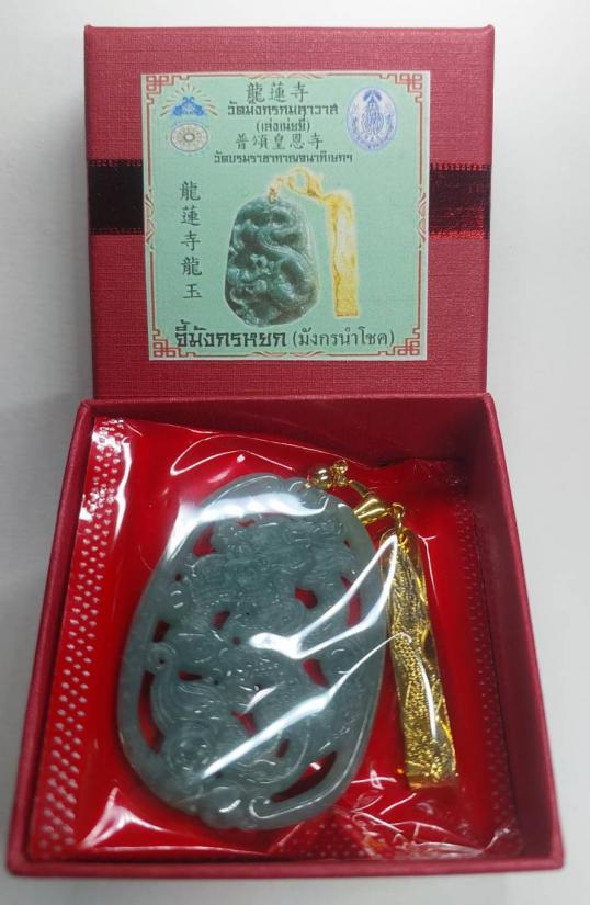 จี้มังกรหยก (มังกรนำโชค) วัดมังกรกมลาวาส (เล่งเน่ยยี) เนื้อหยกสีโอเชี่ยนบลู สวยๆ |