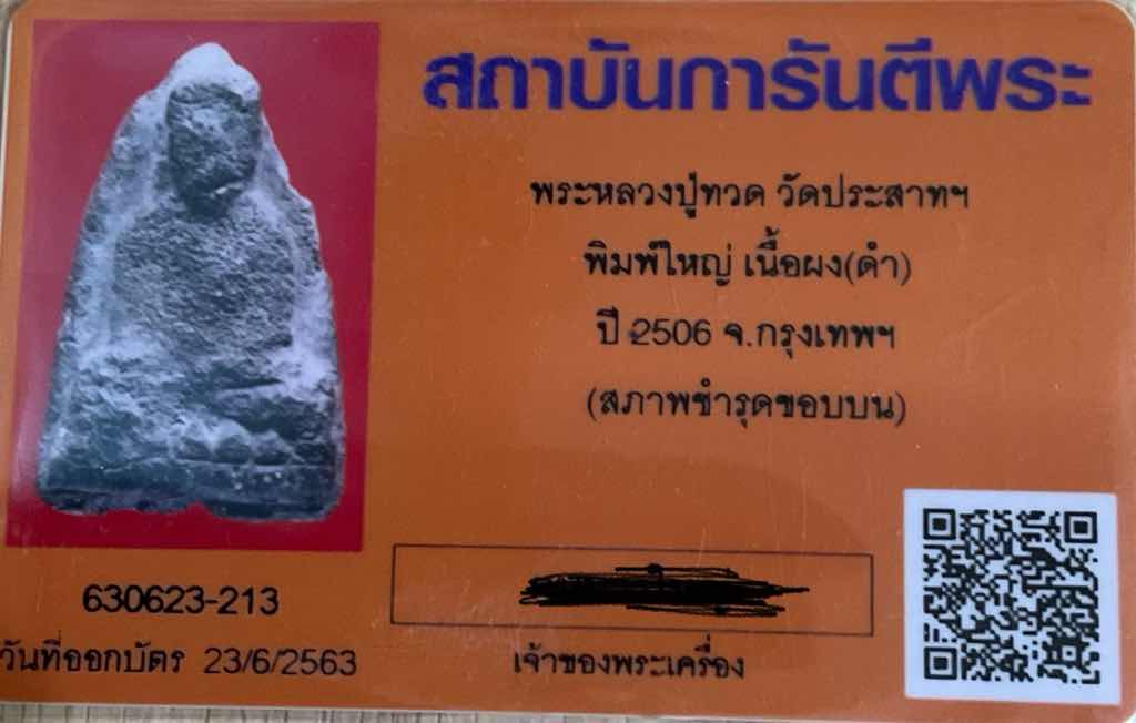 หลวงปู่ทวดวัดประสาท ปี 2506 เนื้อดำ มีบิ่นข้างตามรูป