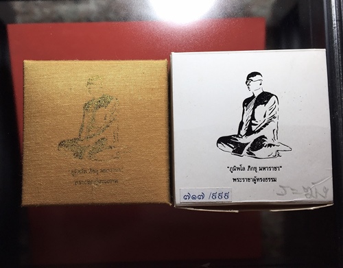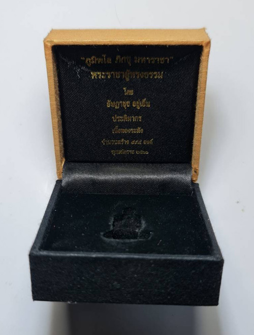 ชื่อพระเครื่อง พระกริ่ง "ภูมิพโล ภิกขุ มหาราชา " พระราชาผู้ทรงธรรม ผลงานอาจารย์อัษฎายุธ อยู่เย็น เนื้อทองระฆัง หมายเลข 717 กล่องเดิมครับ