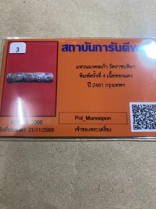 แหวนมงคลเก้า วัดราชบพิธ ฯ ปี 2481