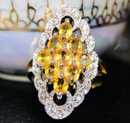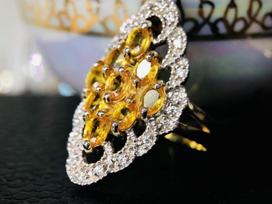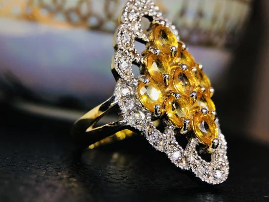 แหวนเงินแท้ ชุบทองคำแท้ พลอยบุษราคัม