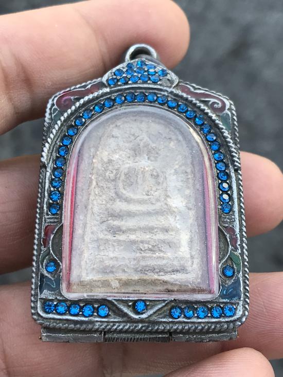 พระสมเด็จเก่า พร้อมตลับเงิน (ผสม) ฝังพลอย ลงยา ไม่ทราบที่