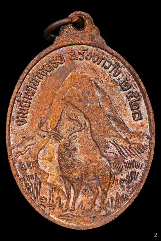 เหรียญกวางเหลียว งานถ้ำผานางคอย หลวงพ่อวัดดอนตัน เนื้อทองแดง ปี2520 จ.น่าน |