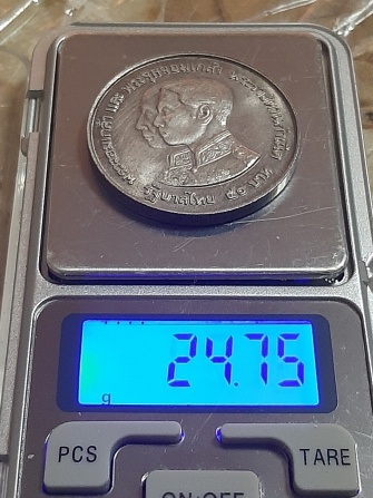 เหรียญเงิน 50 ปี ที่ระลึกพิพิธภัณฑสถานแห่งชาติ 100 ปี พ.ศ.2517 เนื้อเงิน หนัก 24.75 กรัม ขนาดเส้นผ่าศูนย์กลาง 38 มิล พร้อมตลับ (เคาะเดียว)