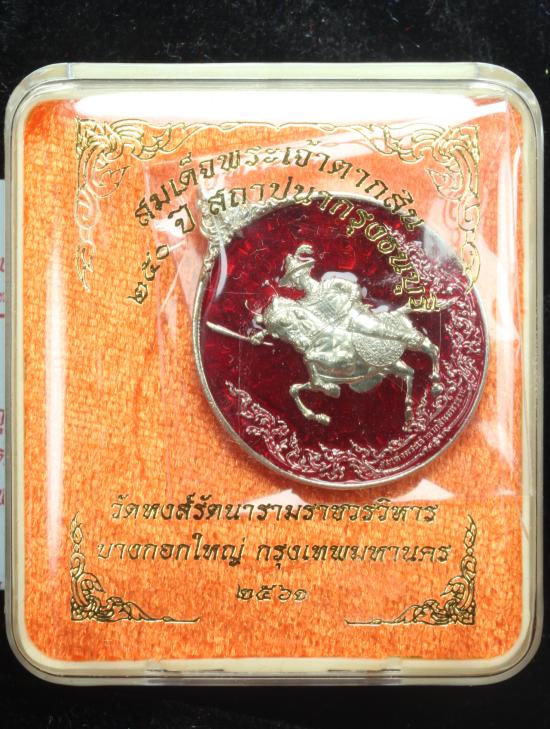 เคาะเดียว พิมพ์เล็ก กะไหล่เงินลงยาแดง เหรียญสมเด็จพระเจ้าตากสินมหาราช 250 ปีสถาปนากรุงธนบุรี วัดหงส์รัตนารามราชวรวิหาร ปี 2561 ตรวจ/แก้ไขแบบ โดย อาจารย์เฉลิมชัย โฆษิตพิพัฒน์ เหรียญสวยน่าเก็บ//No กะไหล่เงินลงยาจิวลี่