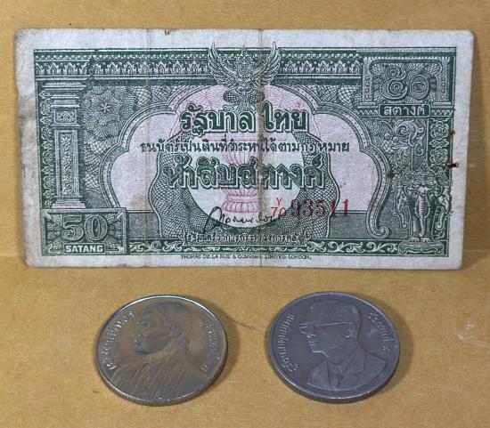 ชื่อพระเครื่อง วัดใจ ธนบัตร 50 สตางค์ สภาพพอสวยและเหรียญที่ระลึก 2 วาระ