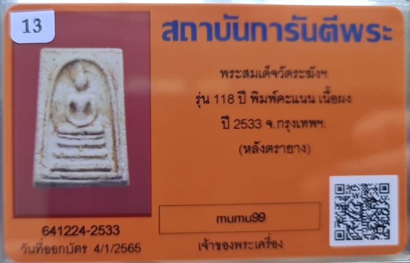 ## สมเด็จวัดระฆัง อนุสรณ์ 118ปี พ.ศ.2533 พิมพ์คะแนน "พระสวยเดิมไม่ผ่านการใช้.หลังปั้มตรายาง...พร้อมบัตรรับรอง.""รับประกันแท้ตลอดฃีพและแท้ตามมาตรฐานสากล....... อนาคตดี ถูกๆเลยครับ.... ราคายังไม่แรง....ไปออกต่อได้เลยครับ...แท้...ถูก...ดี...น่าเก็บมาก.. |